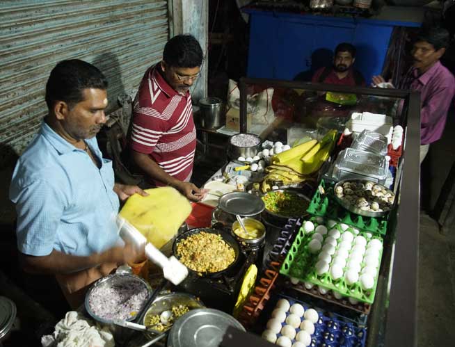 If you are in Thrissur and crave for an egg dish, you cannot miss ‘Nice Nite Egg Food Thattukada’ at Ariyangadi. No advertisement or propaganda. For the last 35 years, the ‘Nice Nite Egg Food Thattukada’ run by Vinod Kumar and Bivish, is eggetarian’s delight. People from far and near visit this small shop to taste the egg delicacies.