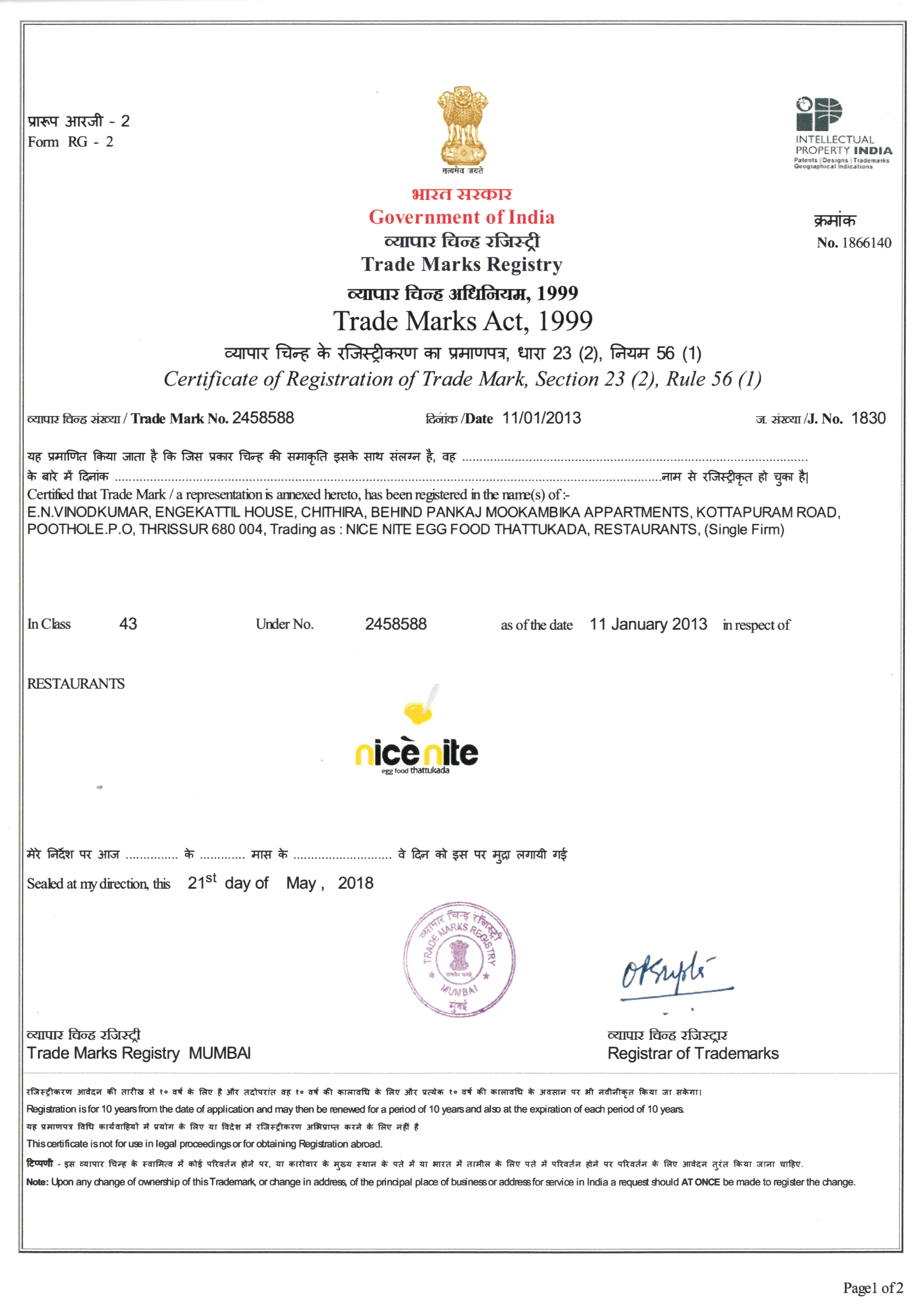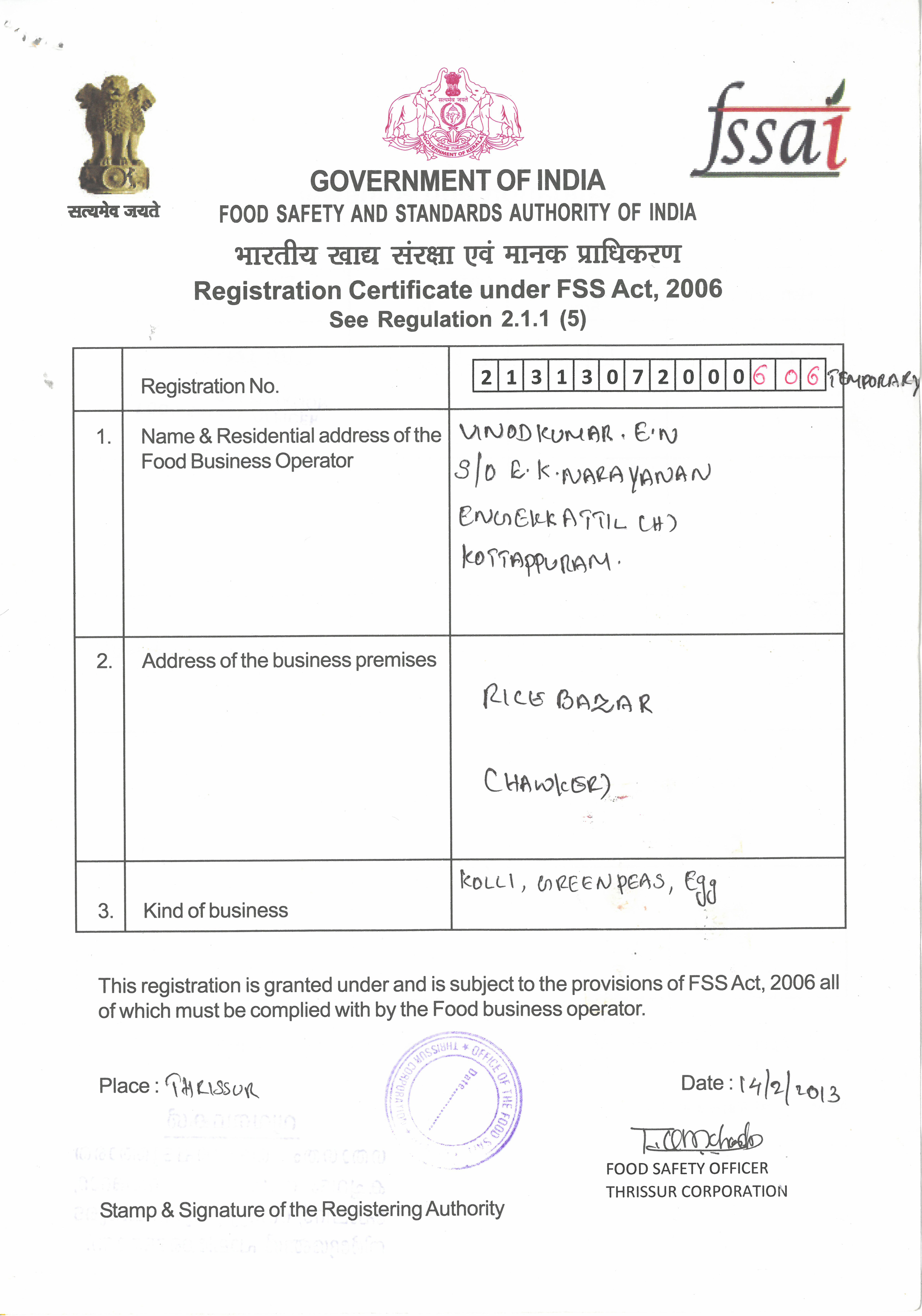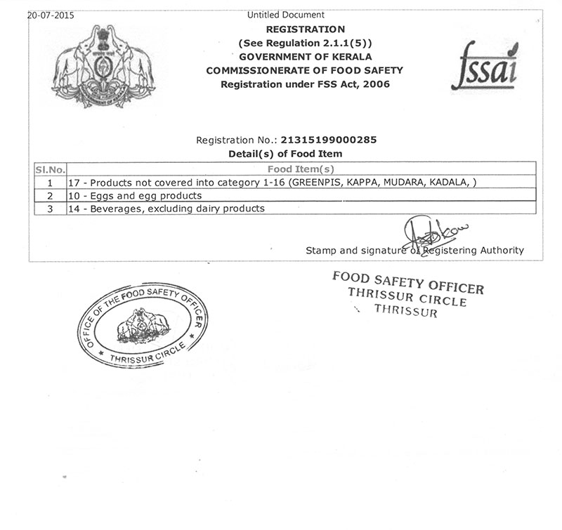 All Government and Autherized certification and registration for the nice nite egg food thattukada was recieved. These certification are make nice nite differ from others.